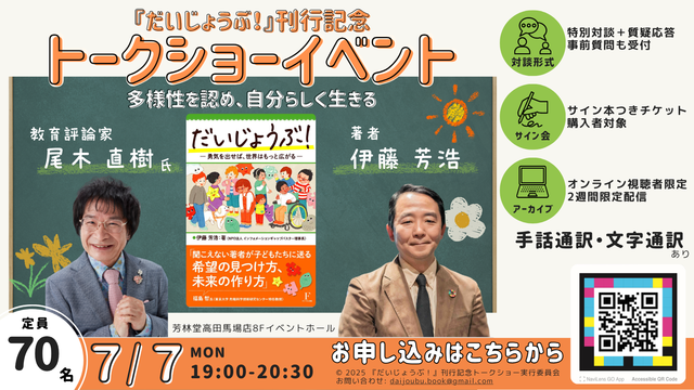 - あの尾木ママと著者が夢の対談!『だいじょうぶ!』刊行記念特別イベント開催 - 「ひとりひとり違っていい、そのままのあなたで大丈夫」