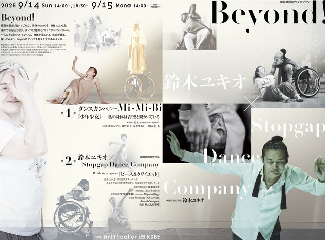Beyond!は、鈴木ユキオとイギリスのインクルーシブダンスStopgap Dance Companyの数年にわたる交流から生まれたプロジェクト。2年をかけコラボ作品を創作する。今年度は、両国でのクリエイションの過程を発表するshowingと、ゲストパフォーマンスに日本のインクルーシブダンスMi-Mi-Biを迎えた2作品を競演する。日時:2025年9月14日(日)、15日(月祝)