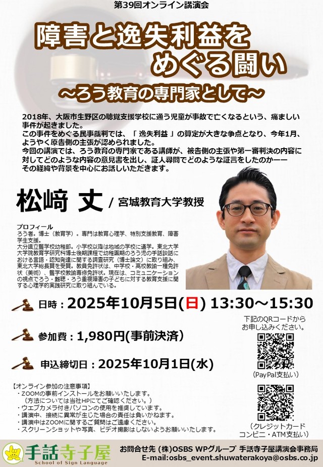ろう教育の専門家である松崎丈氏(ろう者)をお迎えし、お話しいただきます。
