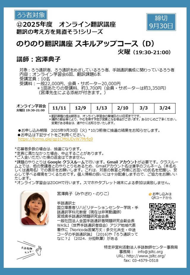 NPO法人手話教師センター主催◇2025年度 オンライン翻訳講座