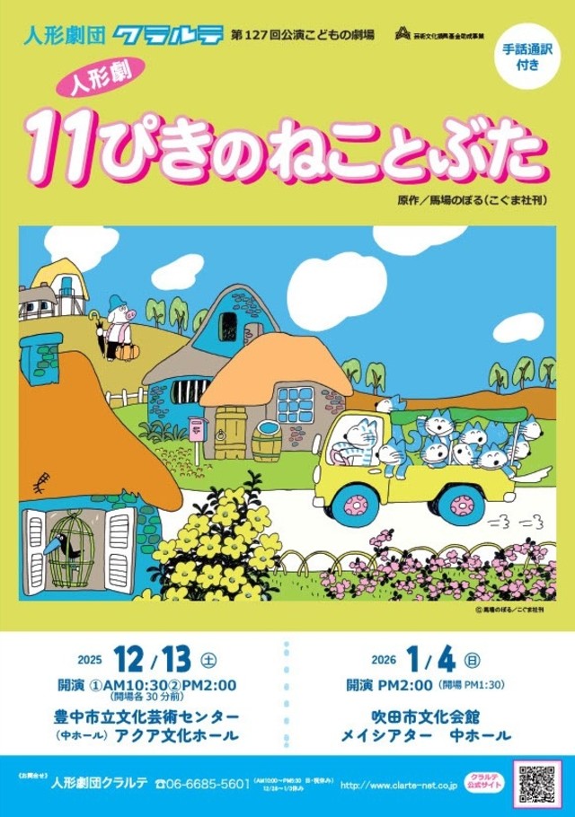 子どもから大人まで楽しめる大型人形劇で舞台手話通訳を実施します。(受付の手話サポートあり)舞台手話通訳:三田宏美・村上奈美(豊中)・森田眞美(吹田)